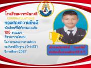 ขอแสดงความยินดีกับเด็กชายเกียรติศักดิ์ รอดสวัสดิ์ นักเรียนที่ได้รับคะแนนเต็ม 100 คแนน วิชาภาษาอังกฤษ