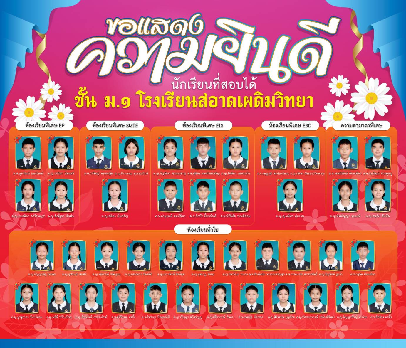 นักเรียนที่สอบได้ ชั้นมัธยมศึกษาปีที่ ๑ โรงเรียนสอาดเผดิมวิทยา ประจำปีการศึกษา ๒๕๖๖