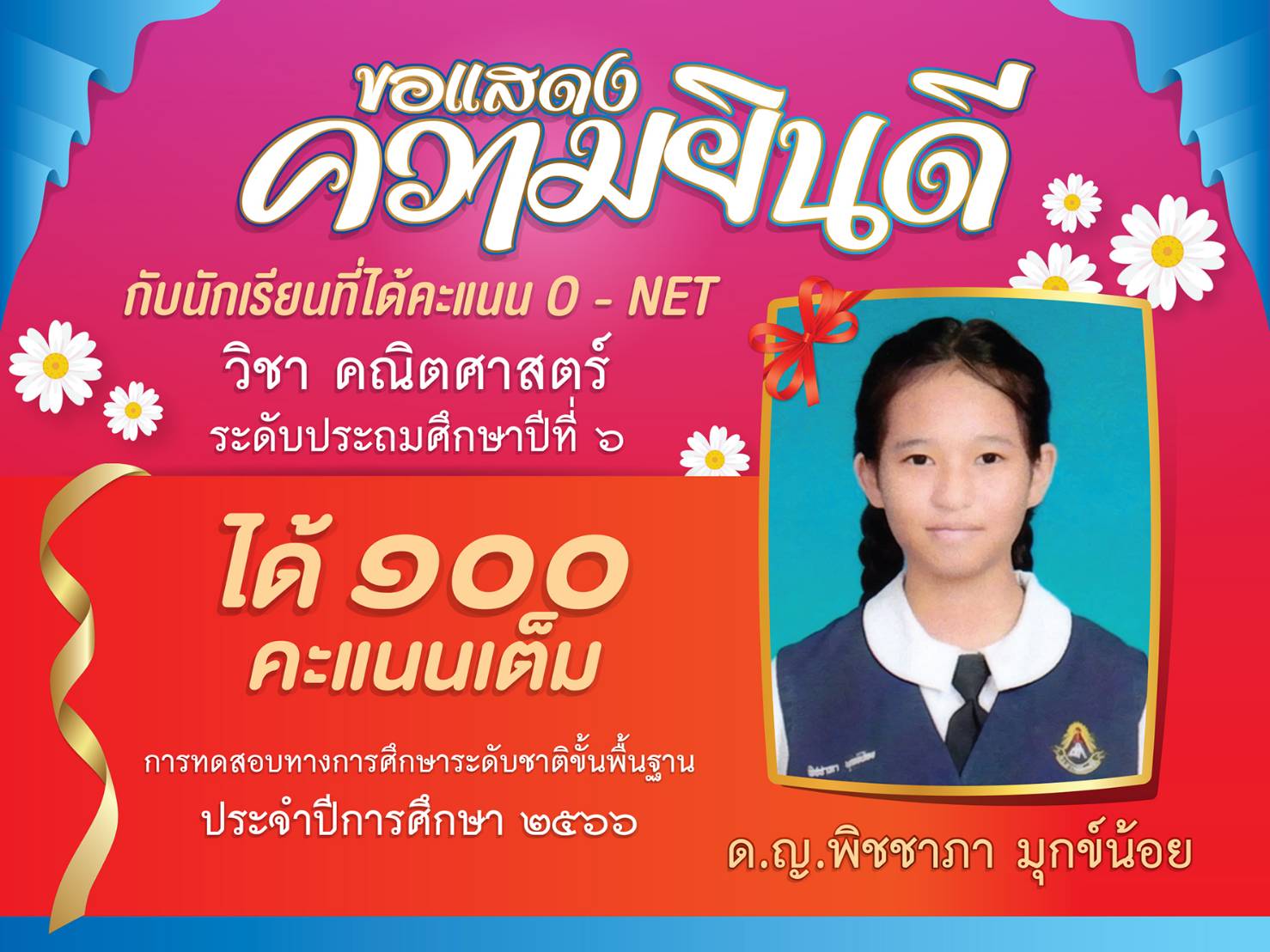 นักเรียนที่ได้คะแนน O-NET วิชาคณิตศาสตร์ ระดับประถมศึกษาปีที่ ๖ ได้ ๑๐๐ คะแนนเต็ม