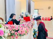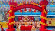 คุณครูพร้อมนักเรียนโรงเรียนฝวาหมินกงลิ ชุมพร นำโดยดร.มยุรี ทิพย์ญาณ ผู้อำนวยการโรงเรียนฝวาหมินกงลิ ในอำเภอเมือง จังหวัดชุมพร ร้องเพลงในงานม่านน้ำแห่งพระบารมี 13 ต.ค. 68