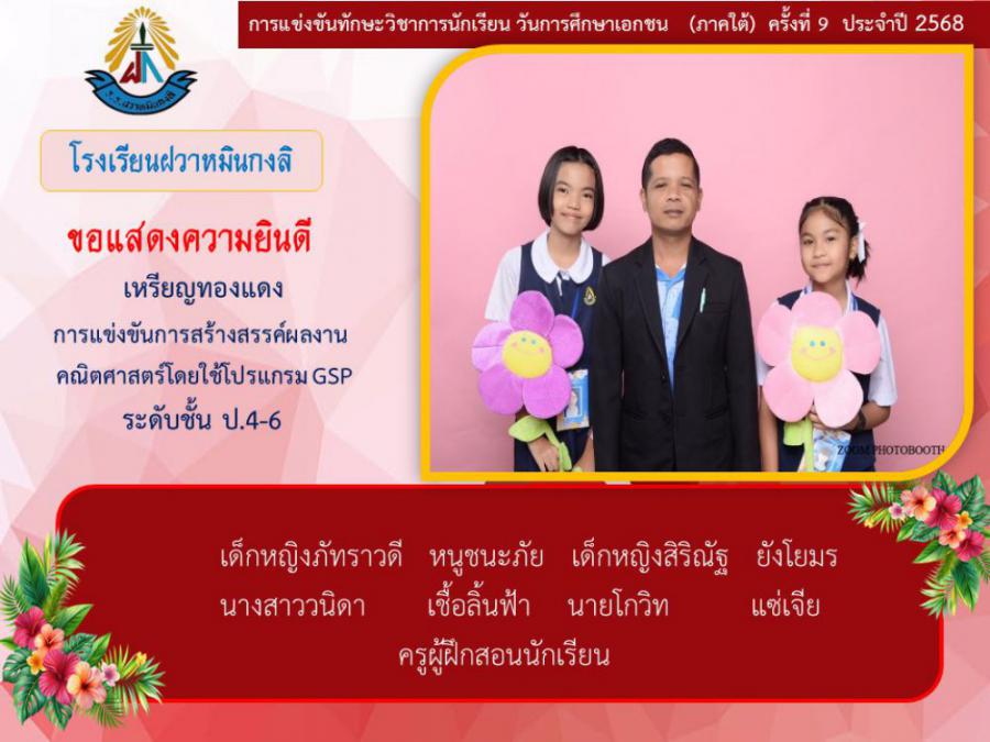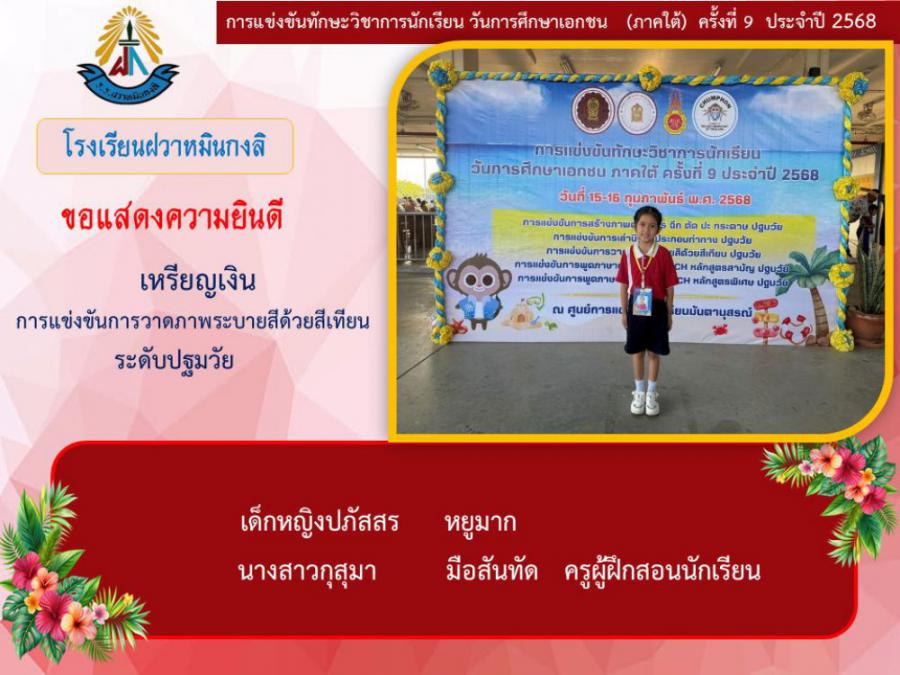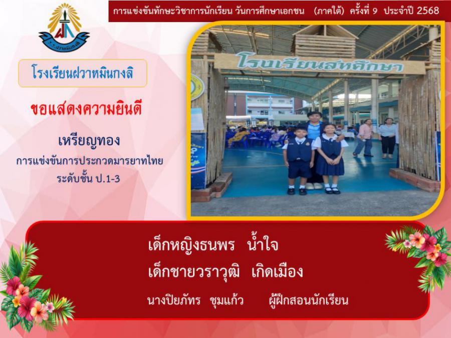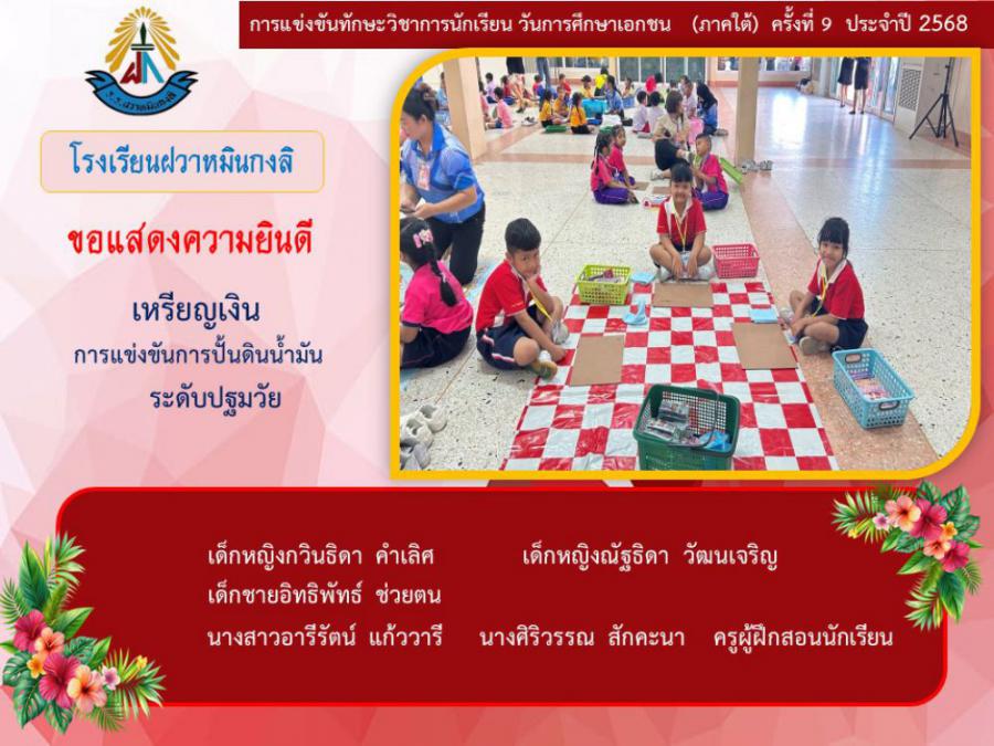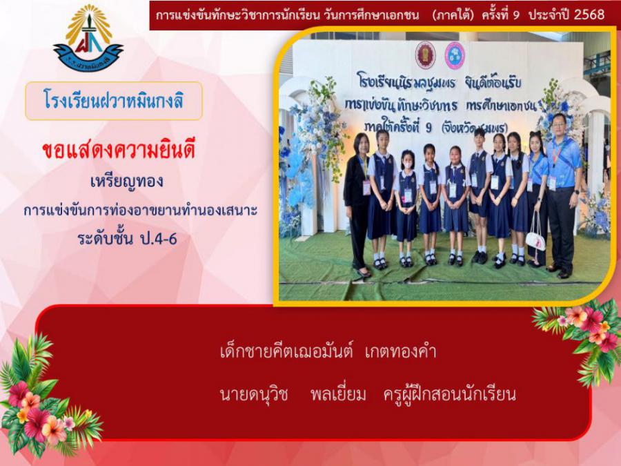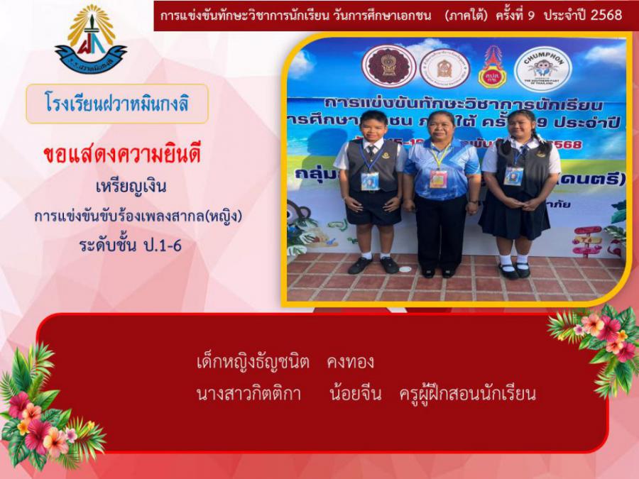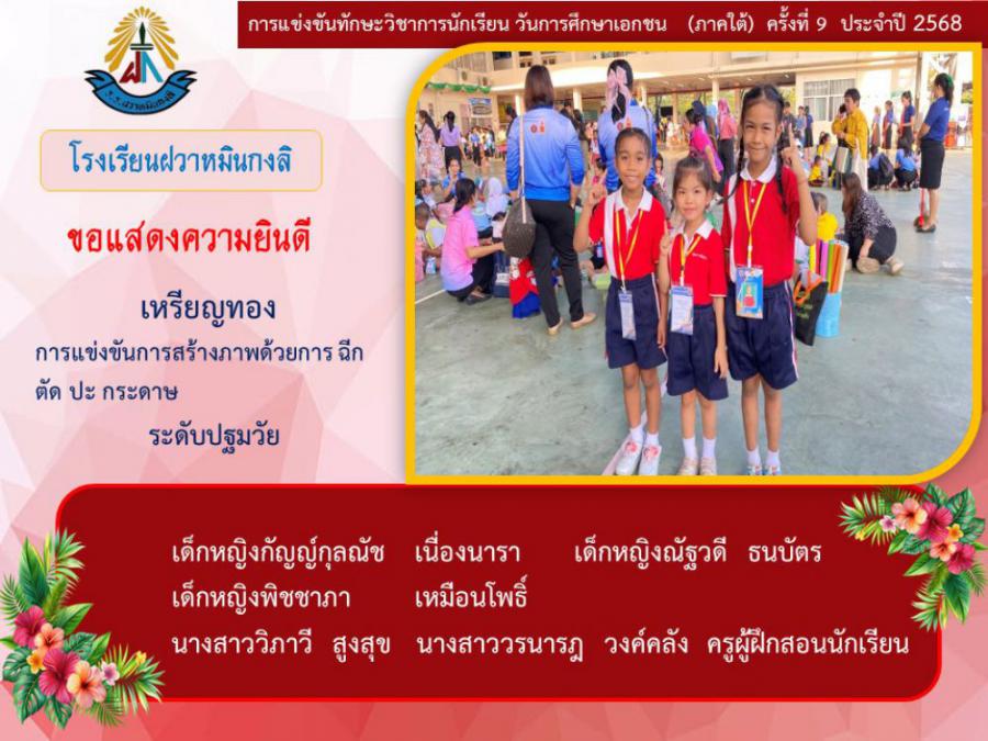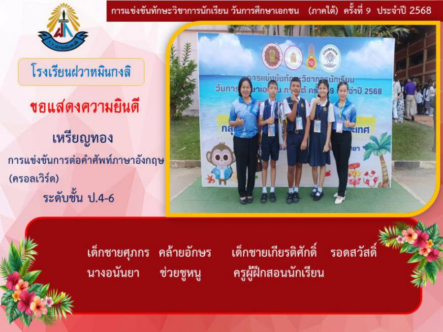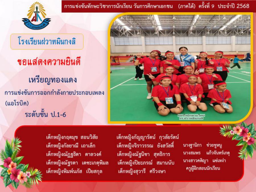 ขอแสดงความยินดีกับนักเรียนและคุณครูผู้ฝึกซ้อม คณะครู ผู้ปกครอง นักเรียนโรงเรียนฝวาหมินกงลิ เนื่องในการเข้าร่วมการแข่งขันทักษะวิชาการ วันการศึกษาเอกชนภาคใต้ ครั้งที่ ๙ ประจำปี ๒๕๖๘