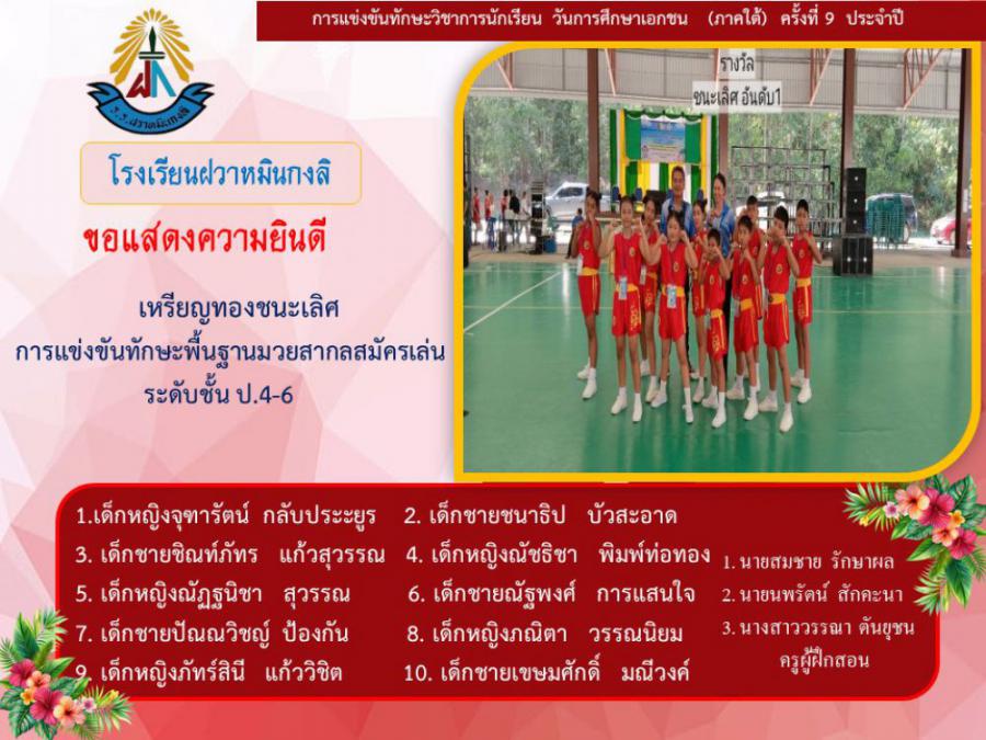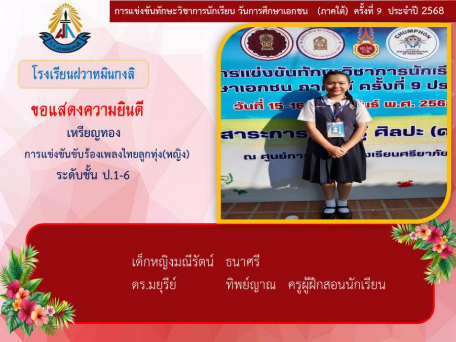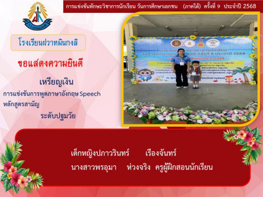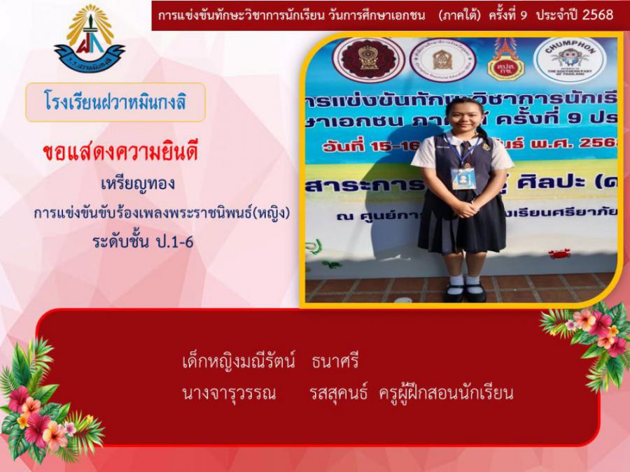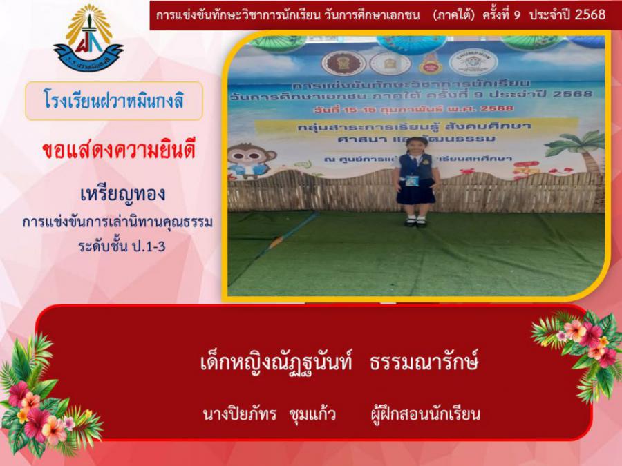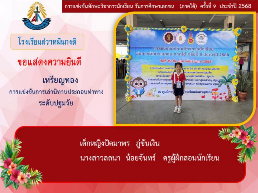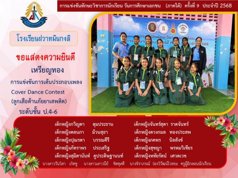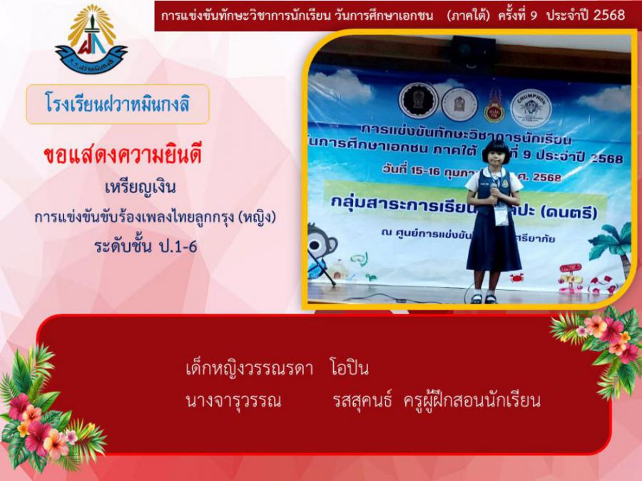 ขอแสดงความยินดีกับนักเรียนและคุณครูผู้ฝึกซ้อม คณะครู ผู้ปกครอง นักเรียนโรงเรียนฝวาหมินกงลิ เนื่องในการเข้าร่วมการแข่งขันทักษะวิชาการ วันการศึกษาเอกชนภาคใต้ ครั้งที่ ๙ ประจำปี ๒๕๖๘