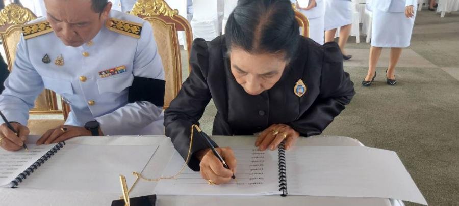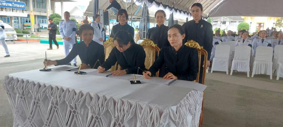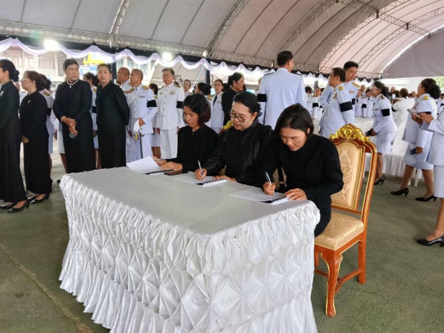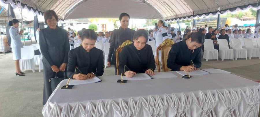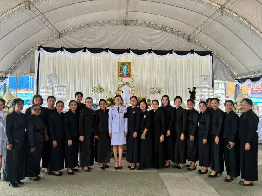 คณะครูร่วมพิธีถวายน้ำสรงพระบรมศพเบื้องหน้าพระฉายาลักษณ์ สมเด็จพระนางเจ้าสิริกิติ์ พระบรมราชินีนาถ พระบรมราชชนนีพันปีหลวง วันอาทิตย์ที่ 26 ตุลาคม 2568 ณ ลานอเนกประสงค์หน้าเทศบาลเมืองชุมพร S:0