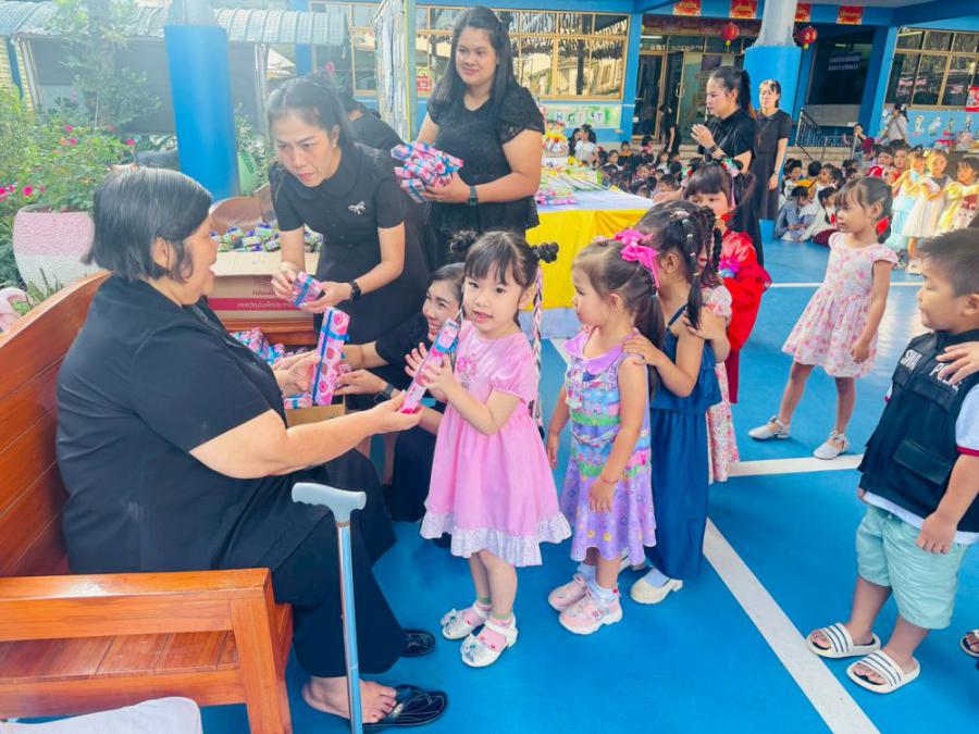 ขอขอบคุณมูลนิธิชุมพรการกุศลสงเคราะห์ ร้านพี่ปุ้ม และ ร้านมิตรยนต์ ที่มอบของขวัญวันเด็กให้กับนักเรียนโรงเรียนฝวาหมินกงลิ S:0